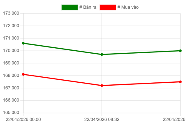 Giá vàng miếng SJC được đẩy lên mức 167,5 – 170 triệu đồng/lượng, tăng nhẹ 300.000 đồng so với buổi sáng. Tuy nhiên, nếu so với cuối phiên hôm qua thì vẫn đang “lùi” khoảng 600.000 đồng mỗi lượng.