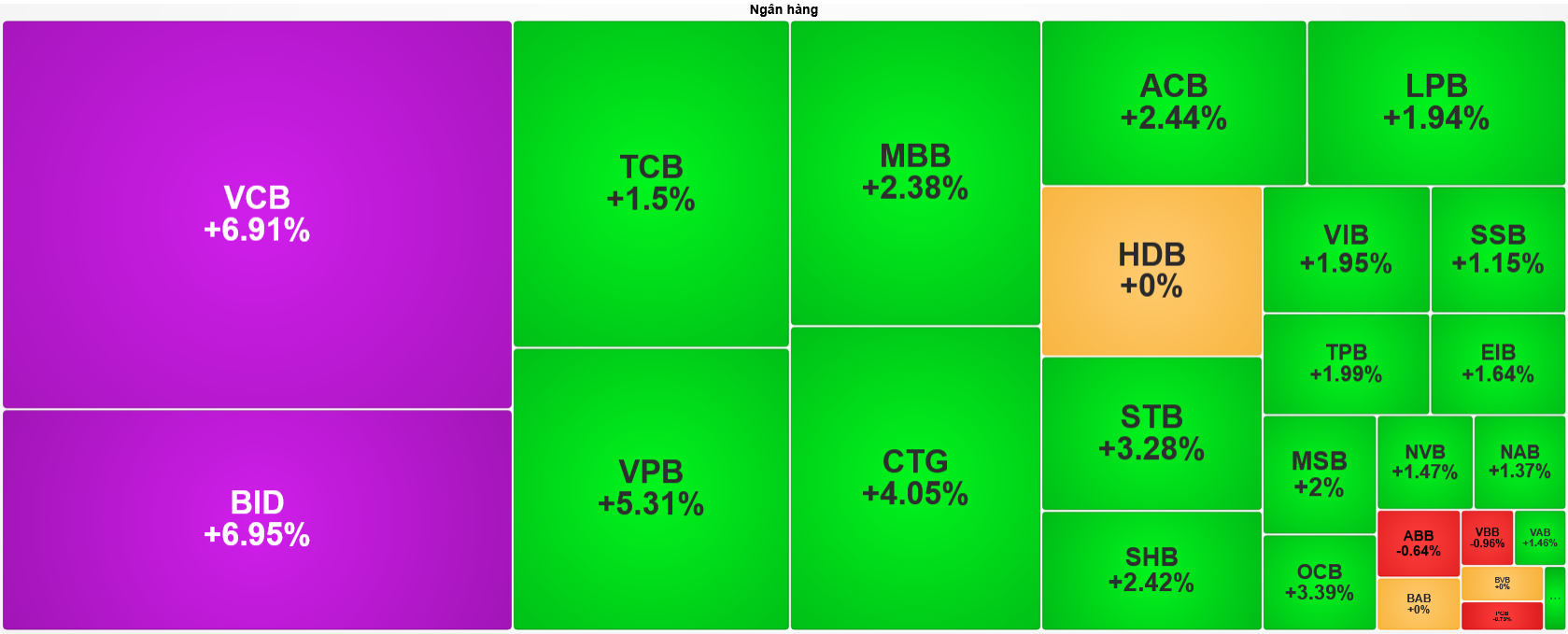 Trong VN30, 3/4 mã tăng trần đều là các mã ngân hàng, gồm VCB, BID và VPB. Thành viên cuối cùng của là đại diện của nhóm "chứng trần" trong rổ: SSI.
