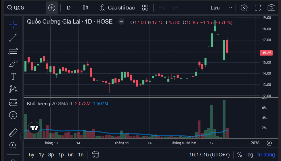 Đây là 1 cú xoay chiều khá gắt với QCG khi ở phiên hôm qua, mã này đã có một phiên đảo chiều kinh ngạc, "quay xe" từ sàn, bật ngược tăng hơn 6%, tương đương +13% chỉ trong chưa đầy 1 giờ.