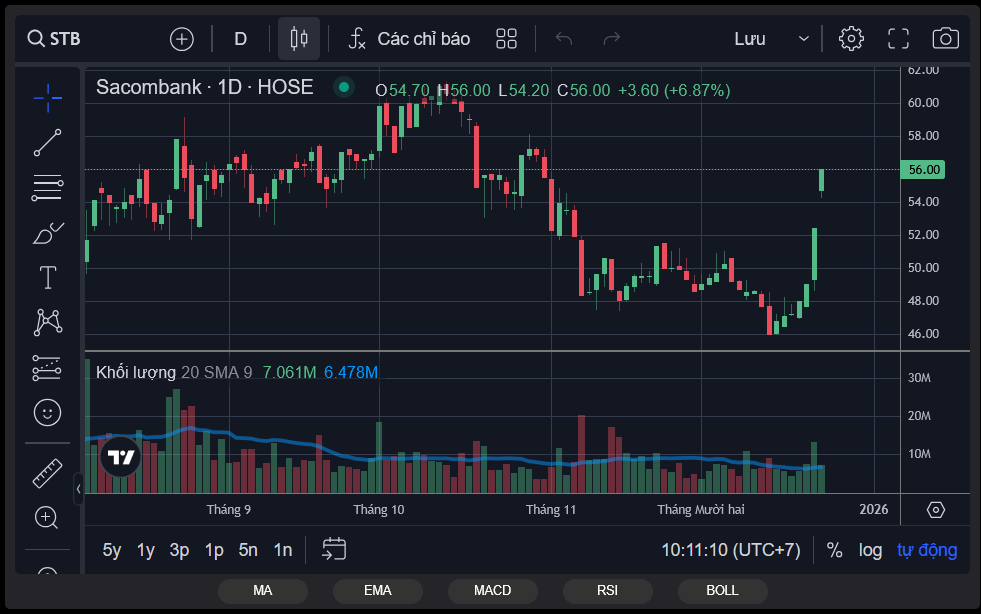 Ngay từ đầu phiên, lực cầu gia tăng mạnh ở nhóm vốn hóa lớn. Cổ phiếu STB nhanh chóng tăng kịch trần, dư mua hơn 4,3 triệu đơn vị chỉ ít phút sau khi kết thúc phiên ATO.