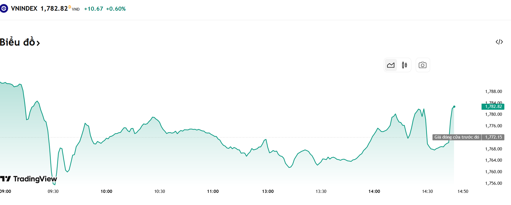 Kết phiên hôm nay, VN-Index đóng cửa ở 1.782,82, tăng thêm 10,67 điểm (+0,6%) so với phiên trước. Rổ VN30 cũng đi lên 2.015,33, tăng 10,26 (+0,51%). Chỉ có HNX là quay đầu giảm, xuống còn 252,24 điểm (-1,12%).