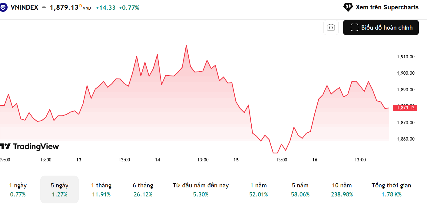 Tuy nhiên, càng về cuối tuần, thanh khoản có dấu hiệu suy yếu, phản ánh tâm lý thận trọng khi chỉ số chưa thể chinh phục thành công mốc 1.900 điểm.