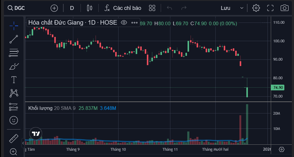 Đặc biệt là thanh khoàn giao dịch cao kỷ lục. Tới hơn 10h, đã có 25 triệu cổ phiếu DGC được sang tay.