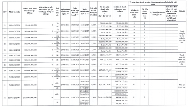Tuy vậy, áp lực vẫn còn phía trước. Tại thời điểm cuối năm 2025, lô PLCCH2124001 (2.000 tỷ đồng) tiếp tục được theo dõi cho kỳ thanh toán tiếp theo vào 31/03/2026. Tức là guồng quay trái phiếu vẫn chưa dừng lại.
