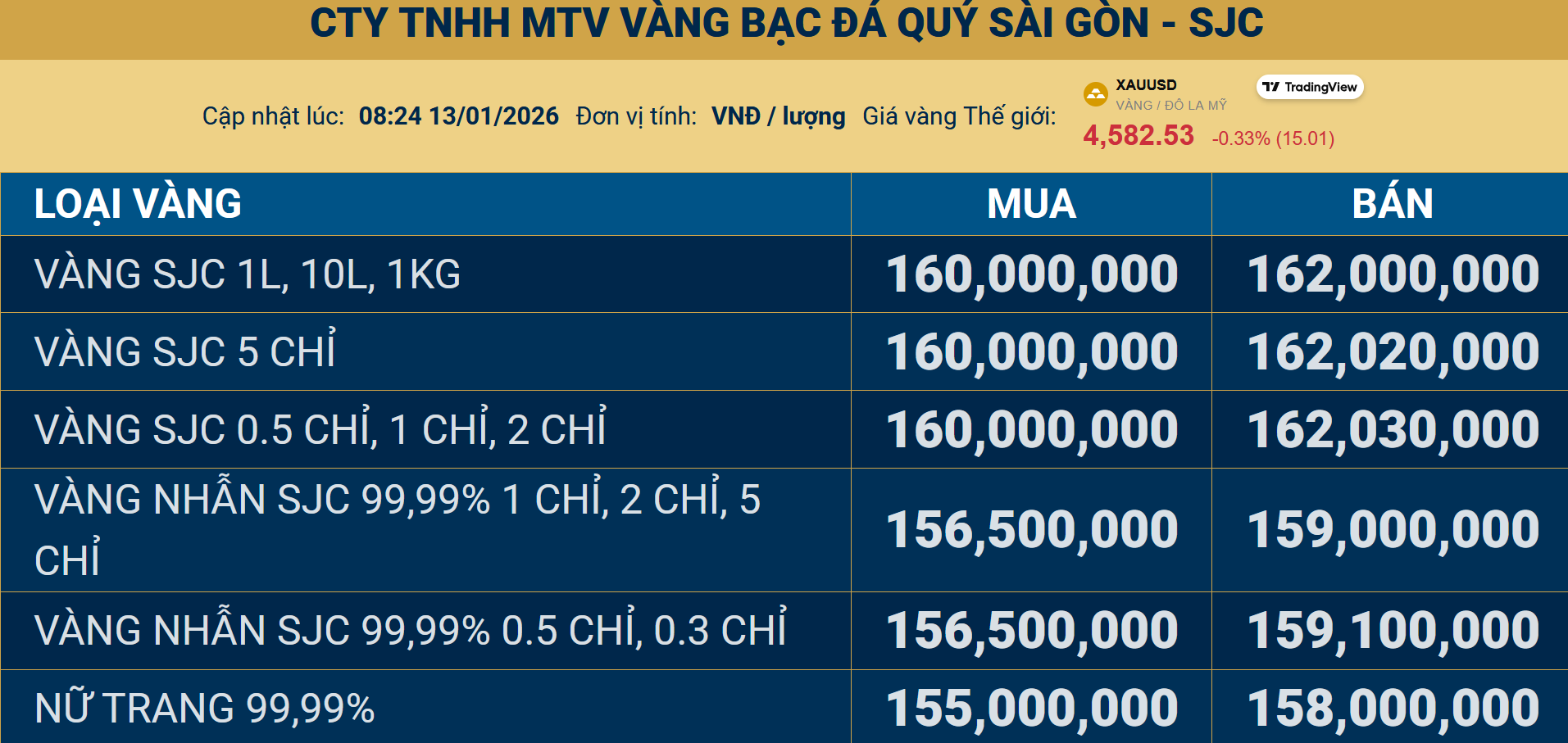Mua vào 156,5 – bán ra 159 triệu đồng/lượng