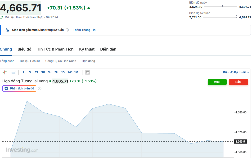 Giá vàng thế giới tăng 77 USD mỗi ounce, lên 4.675 USD, có lúc lên 4.683 USD. Kim loại quý đã tăng 1,8% trong ngày giao dịch đầu tuần và tiến gần lên mức 4.700 USD/ounce.