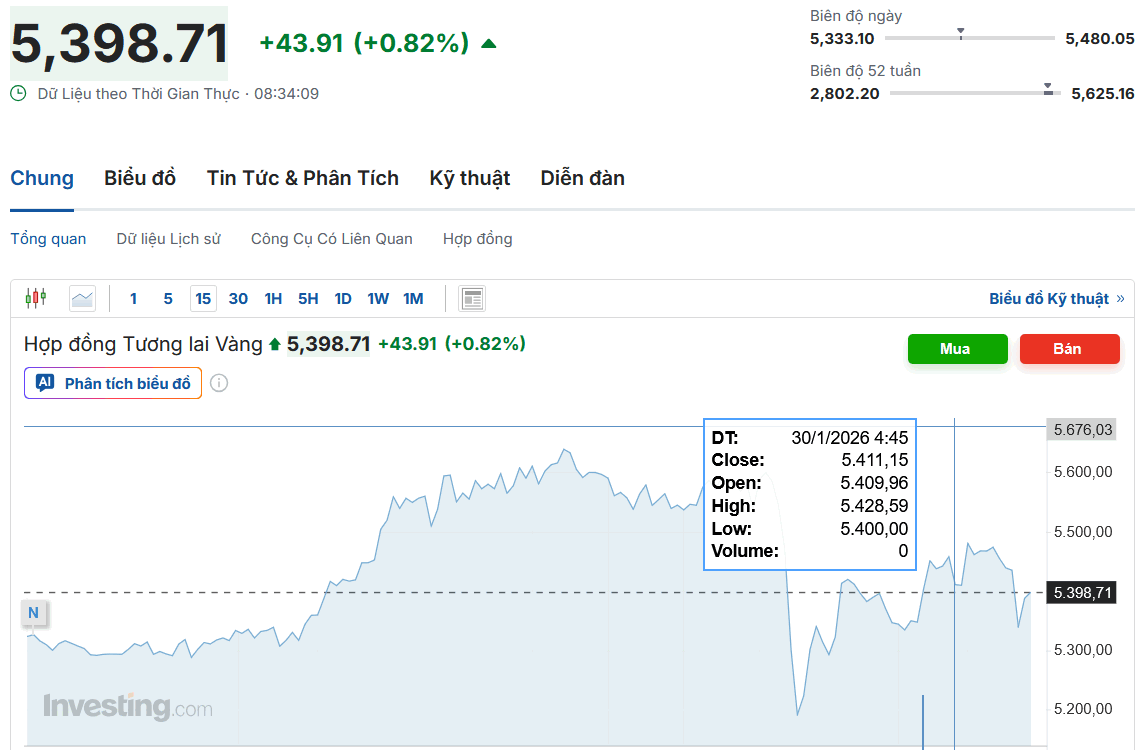 👉 Đóng cửa phiên giao dịch 29/1, giá vàng thế giới giao ngay giảm 34 USD xuống 5.379 USD một ounce.