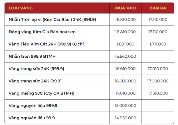 Trong khi đó, Bảo Tín Minh Châu và Bảo Tín Mạnh Hải vẫn giữ nguyên bảng giá, chưa có động thái mới so với hôm qua.