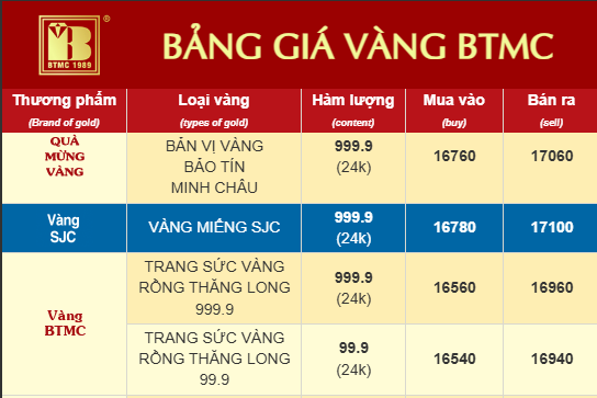 - Mi Hồng: 171 – 173,5 triệu đồng/lượng (mua vào cao hơn SJC khoảng 500.000 đồng/lượng)