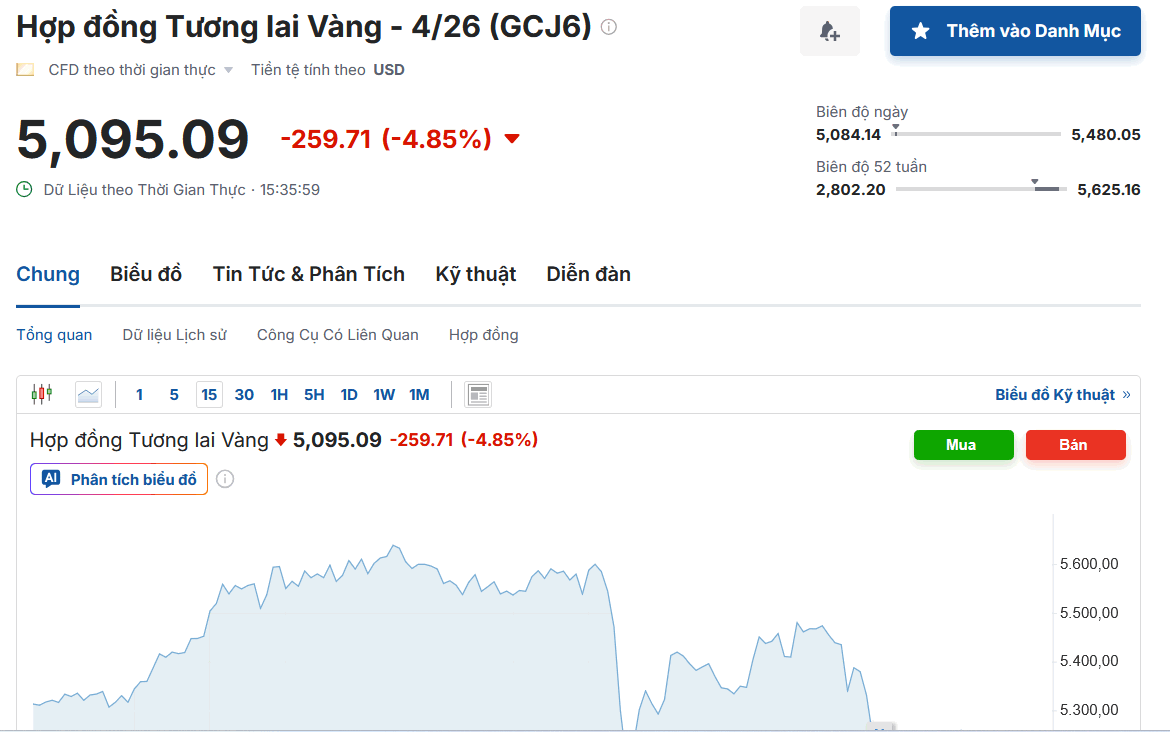 Theo mình ghi nhận lúc 15h30, giá vàng hợp đồng tương lai chỉ còn chưa tới 5.100 USD/ounce.