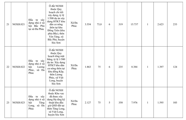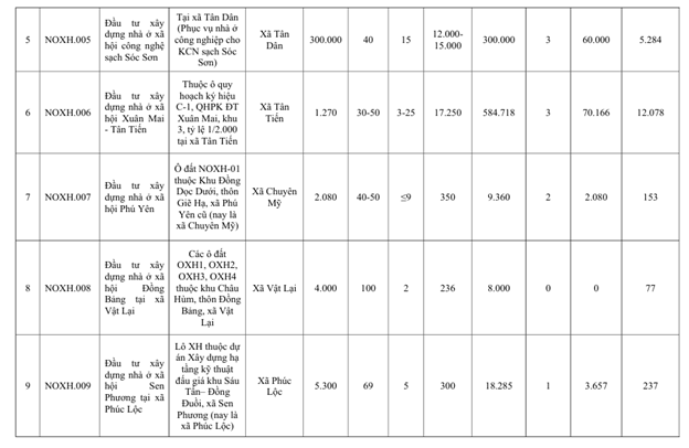 📍 39 dự án trải rộng nhiều khu vực, tập trung chủ yếu tại Sóc Sơn, Đông Anh, Thạch Thất, Quốc Oai cùng các xã, phường ven đô. Quy mô không hề nhỏ: có dự án chỉ vài nghìn m² nhưng cũng có dự án lên tới hàng trăm nghìn m² đất, cao từ 5–15 tầng, đủ sức đáp ứng chỗ ở cho hàng chục nghìn người dân.