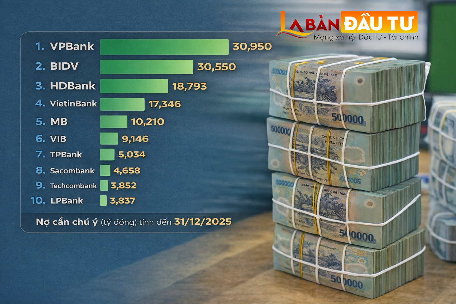 Theo dữ liệu tờ An Ninh Tiền Tệ vừa công bố, VPBank đang là ngân hàng có quy mô nợ cần chú ý lớn nhất hệ thống, với khoảng 30.950 tỷ đồng tại thời điểm cuối năm 2025.