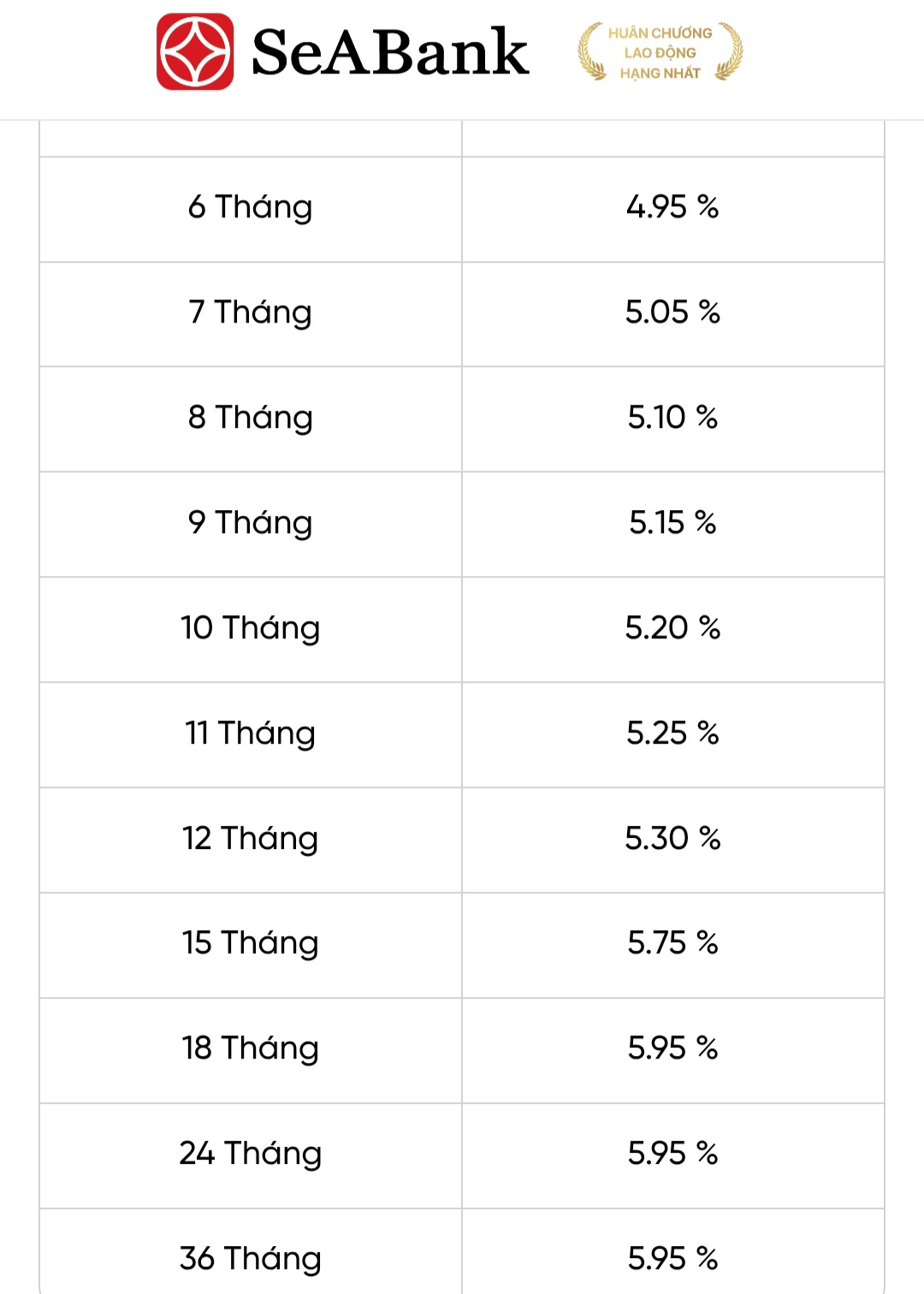 - 6 tháng: 4,95%/năm