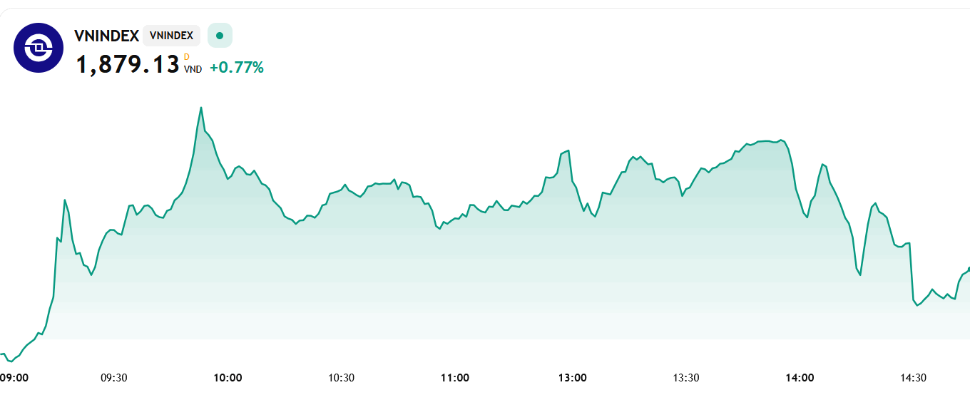 Với diễn biến này, VN-Index đã lấy lại gần một nửa điểm số đã mất của phiên giảm điểm hôm qua.