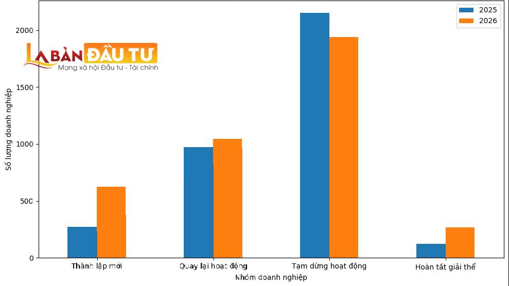Cùng lúc, 1.045 doanh nghiệp quay lại hoạt động, tăng 7,3%. Dòng tiền và kỳ vọng rõ ràng đang quay lại thị trường.