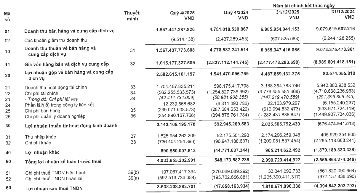 👉 Một bước tiến rất lớn nếu so với khoản lỗ 4.394 tỷ đồng của năm 2024.