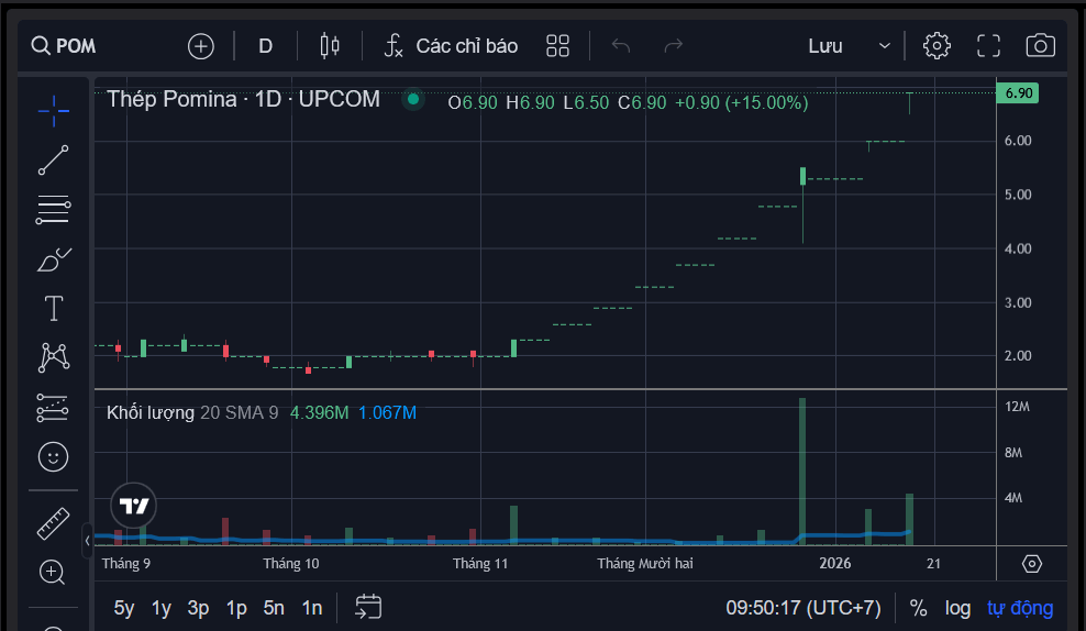 Với việc đang giao dịch trên UPCoM, biên độ mỗi phiên lên tới 15%, đà tăng của POM có thể nói là nhanh chóng mặt. Cổ phiếu POM bị hủy niêm yết trên HoSE từ tháng 5/2024 sau 14 năm lên sàn và phải chuyển sang UPCoM.