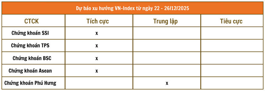 Ở dự báo tích cực hơn, Chứng khoán TPS cho rằng, VN-Index đã bứt phá thành công lên trên các đường trung bình động ngắn hạn MA10 và MA20, đồng thời vượt lên trên toàn bộ hệ thống đường trung bình, qua đó củng cố độ tin cậy của xu hướng tăng hiện tại.