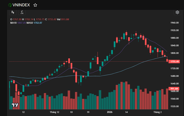 Kết phiên, VN-Index chính thức giảm hơn 27 điểm, lùi về vùng 1.755 điểm – mức thấp nhất từ đầu năm đến nay. Thanh khoản đạt hơn 34.000 tỷ đồng, nhưng bảng điện vẫn chủ yếu là sắc đỏ với gần 300 mã giảm, chỉ hơn 50 mã tăng.