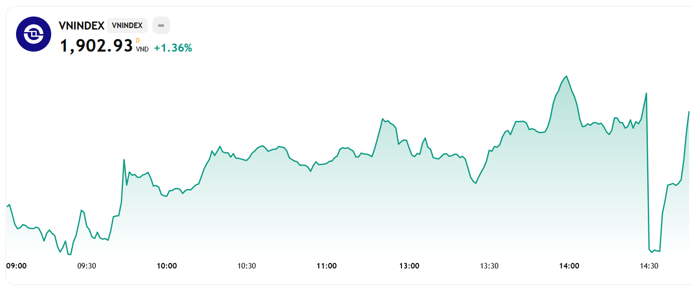 📈 Khi ai cũng nghĩ đến kịch bản xấu nhất, thị trường sẽ có phiên giảm đỏ thì chỉ trong ít phút ngắn ngủi sau đó, đồ thị lại đi lên dựng đứng, rồi cán mốc 1.902,93 điểm như chúng ta đã thấy.