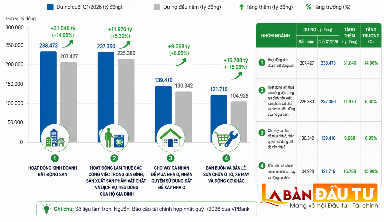 Lợi nhuận của VPBank quý đầu năm 2026 đang kể câu chuyện màu hồng nhưng nợ xấu và tín dụng tiếp tục chảy mạnh vào bất động sản đang kể phần còn lại và thực sự là mối lo.